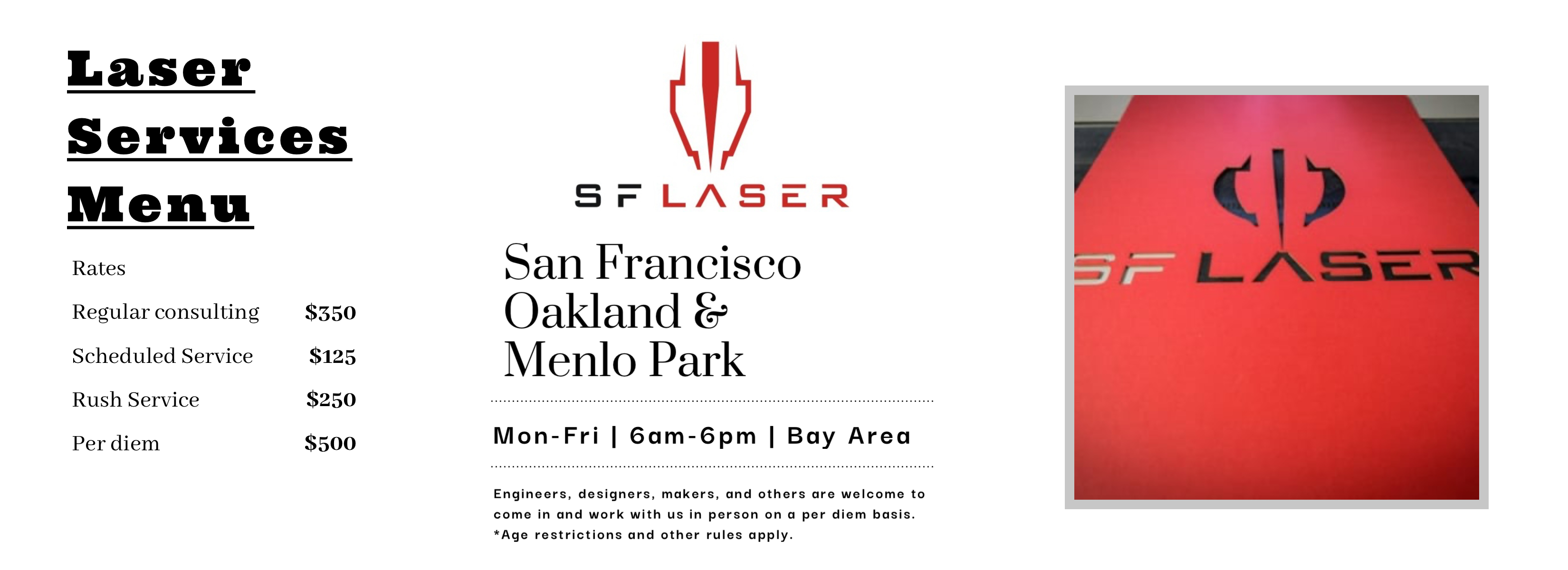 Our clients have ranged from individuals to some of the top companies in the world across various sectors. Whether you're working on a startup, an artistic project, or need large production runs we want to help.Contact us:SFLaserCuttingServices at G-mail (415)741-6837